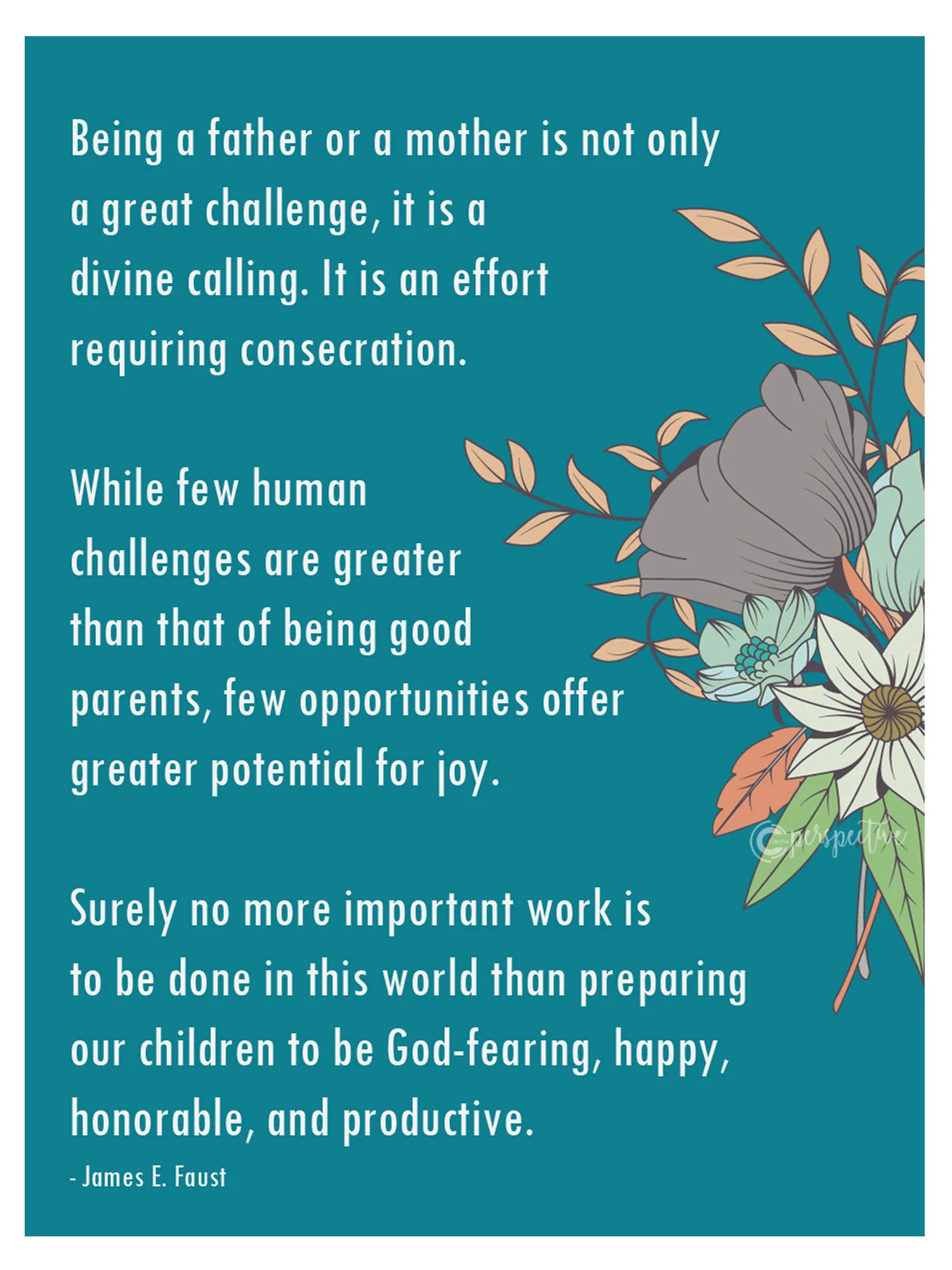 This one is from this talk: The Greatest Challenge In The World - Good Parenting - James E. Faust
