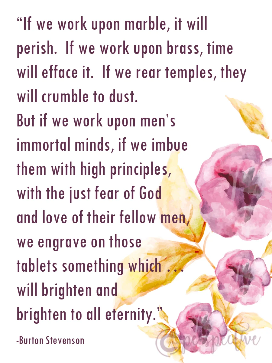 I love the thought of our impact being eternal as we work upon the minds of the little one's that come into our lives. All other things we invest in fade over time. The minds, hearts and lives we are shaping as parents live on, both through our posterity as well as beyond this life.