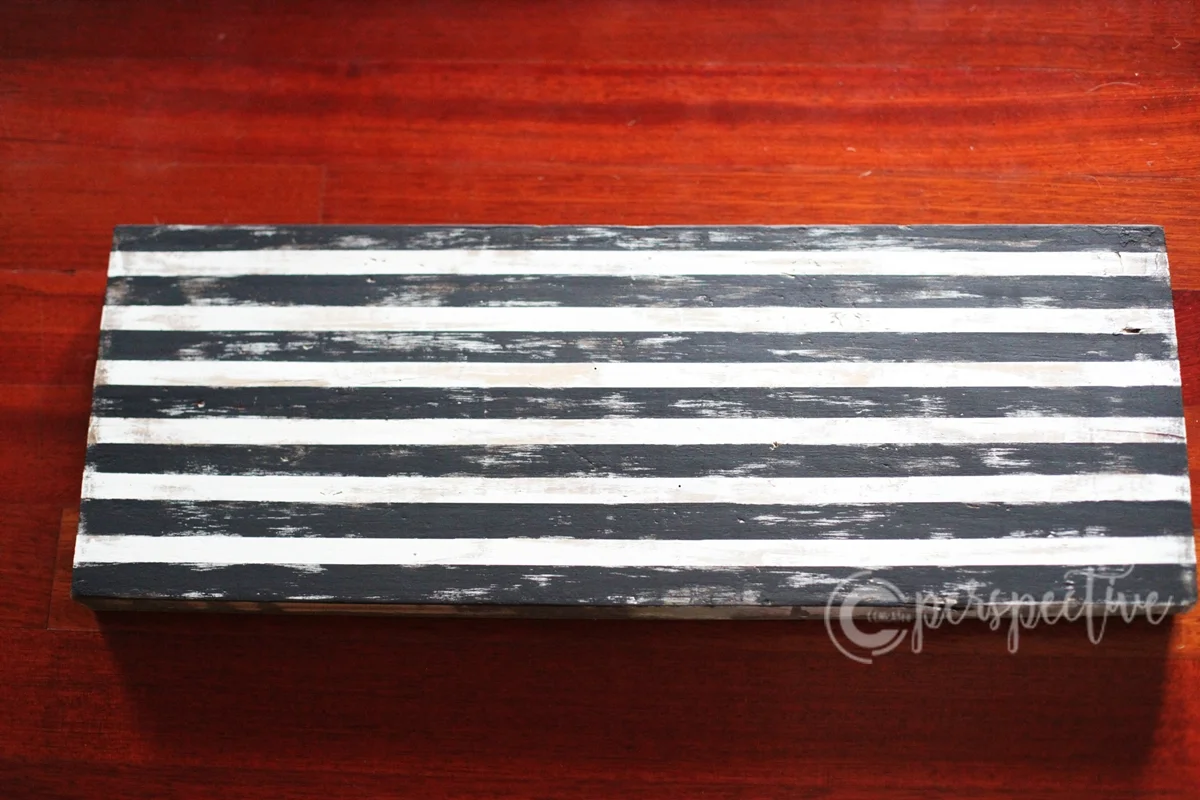 Next I painted with black paint. Since the white is distressed I chose to do the black that way as well. I was sure not to cover all of the white completely.